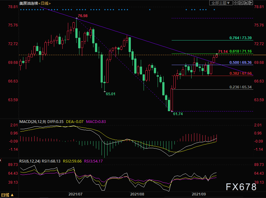 技术面上,油价周一强势突破7月6日延伸以来的下倾趋势线,改变了油价的下行轨迹,未来有望继续向上攀升。另外,MACD红柱再度放大,也暗示上涨动能增加。