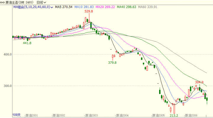 上海原油价格下跌。主力合约SC2006,以253.7元/桶收盘,下跌13.1元,跌幅为4.91%。全部合约成交329119手,持仓增加12434手至184680手。主力合约成交203634手,持仓增加5109手至67631手。