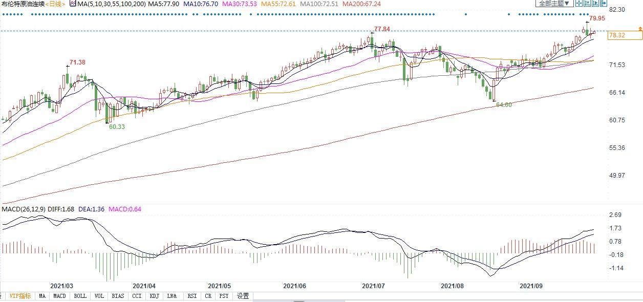 因为需求复苏和全球能源供应危机,推高石油使用量和化石燃料的价格,布油价格周二触及每桶80美元的三年高点。分析师表示,布油自2018年9月以来首次突破80美元大关,可能还会继续上涨。