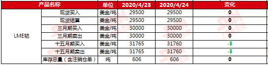 SMM网讯:2020年4月24日LME钴期货官方报价: