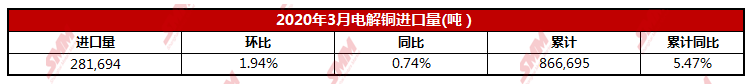2020年3月电解铜进口量