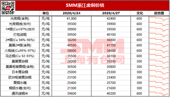 4月27日浙江地区废铜报价