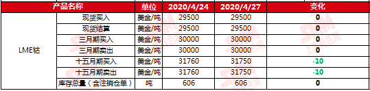SMM网讯:2020年4月27日LME钴期货官方报价: