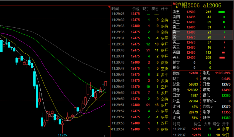 SMM4月28日讯:因铝市供需面好转,近期沪铝在短暂的回调后再度上冲至前期高点,今日沪铝开盘后继续拉升,截止午间收盘,沪铝2006报12480元/吨,涨幅近0.9%。