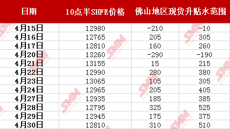 (佛山地区当日10点半升贴水范围)