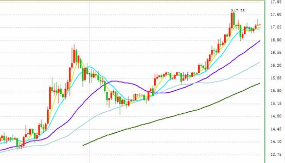 WTI原油期货涨幅一度扩大至17%,最高触及17.75美元/桶,目前交投在17.35附近。