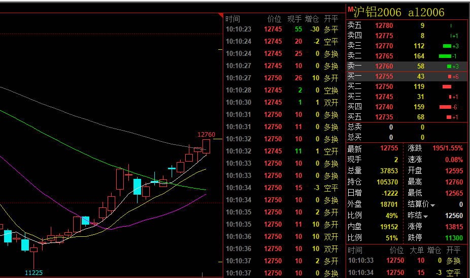 SMM5月6日讯:沪铝节前收3连阳,维稳于12500元/吨之上。节后首日,沪铝延续前期上行势头,开盘迅速拉升,高位探至12760元/吨,为3月中旬以来新高位。截至发稿,沪铝主力合约报12745元/吨,涨幅超1.4%。