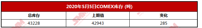 【SMM 数据】2020年5月5日COMEX库存