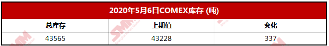 【SMM 数据】2020年5月6日COMEX库存