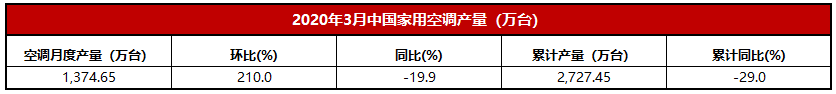 2020年3月中国家用空调产量