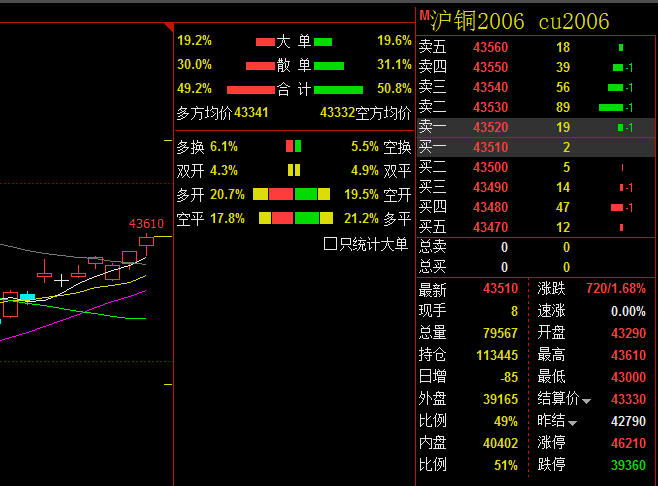 今日沪铜主力缓慢上涨,主要是受消费以及市场对铜需求持续回暖的乐观预期所推动,市场对铜供应紧张的担忧情绪有所舒缓,对铜价增幅存在限制。今日LME因适逢银行假日休市。沪铜主力早间高开于43200元/吨,开盘后围绕43330元/吨位置横盘整理。午前铜价缓慢爬升至43470元/吨后小幅回落。午后开盘,沪铜延续涨势攀至日内最高点43610元/吨。临近尾盘,铜价小幅下挫最终收于43510元/吨,涨720元/吨,涨幅1.68%。沪铜指数日增仓1552手至34.2万手;日成交量增加30306手至19.9万手。