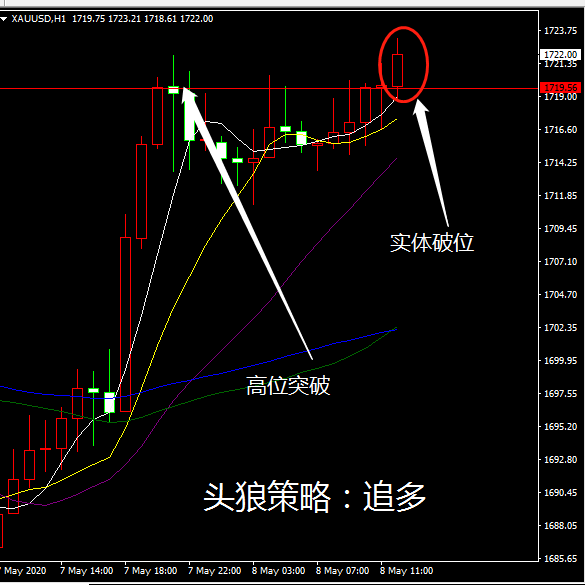 提示,黄金短线走高,破位日内高点,现价1720附近追多提前布局非农数据