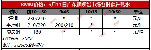 【SMM价格】5月11日广东铜现货市场各时段升贴水(第一时段)