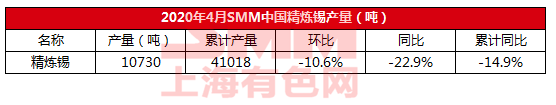 2020年4月SMM中国精炼锡产量