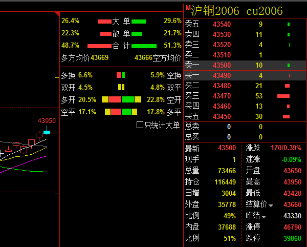 今日沪铜主力迅速上涨,再向上面临前期跳空缺口,短多获利离场,空头试空,上涨动能不足,铜价表现为冲高回落。技术面看仍有上涨空间,短期目标指向44000元/吨。