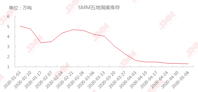 库存方面,据SMM调研,截至5月8日,SMM五地铅锭库存总量至0.8万吨,较五一节前下降300余吨。由于前期再生铅基本没有出量,消耗原生铅库存,因此国内铅锭库存处于较低位置,预计下周库存小幅微增。