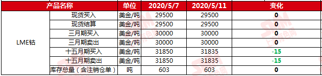 SMM网讯:2020年5月11日LME钴期货官方报价: