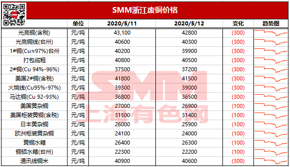 5月12日浙江地区废铜报价