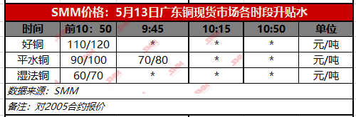 【SMM价格】5月13日广东铜现货市场各时段升贴水(第一时段)