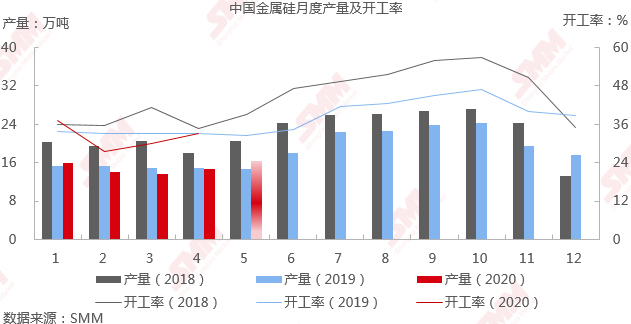 预计5月全国硅企开工率将回升至36%左右。