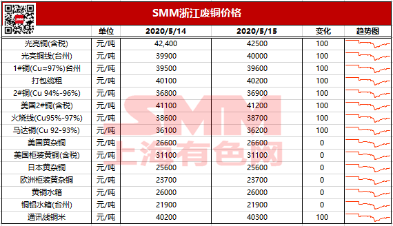 5月15日浙江地区废铜报价