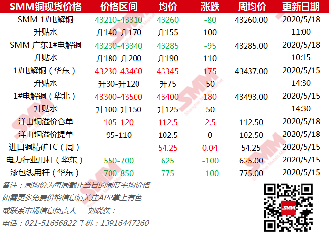 ◇5月18日SMM沪铜现货行情快报:换月后报价持坚 低升水受贸易商青睐