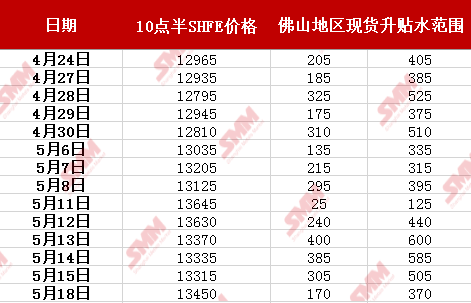 (佛山地区当日10点半升贴水范围)