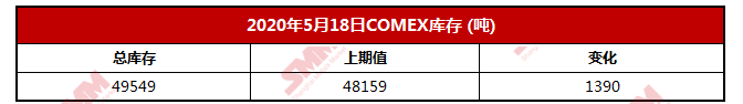 【SMM 数据】2020年5月18日COMEX库存