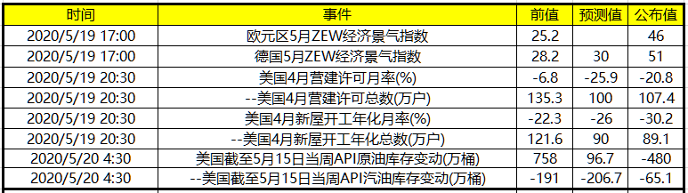 数据方面,德国5月ZEW经济景气指数,前值:28.2,预期:32,公布:51。
