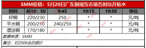 【SMM价格】5月20日广东铜现货市场各时段升贴水(第一时段)