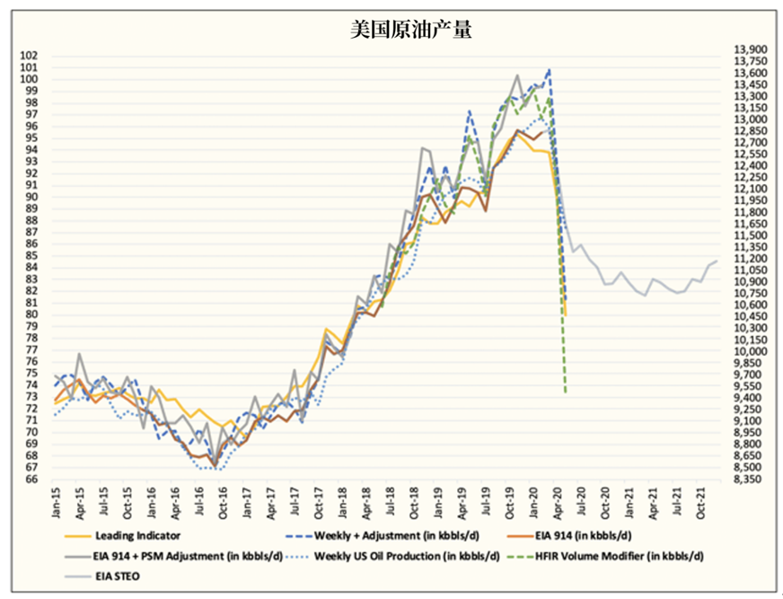 全美平地管道公司(PAA)公布的一季度财报也显示,美国和加拿大的减产规模在350-450万桶/日之间。HFIResearch认为该公司的预计是比较准确的,因为产油商若不提前预定输油管道,就只能以现货价格在市场上出售原油,而目前WTI原油价格仍处于低位。