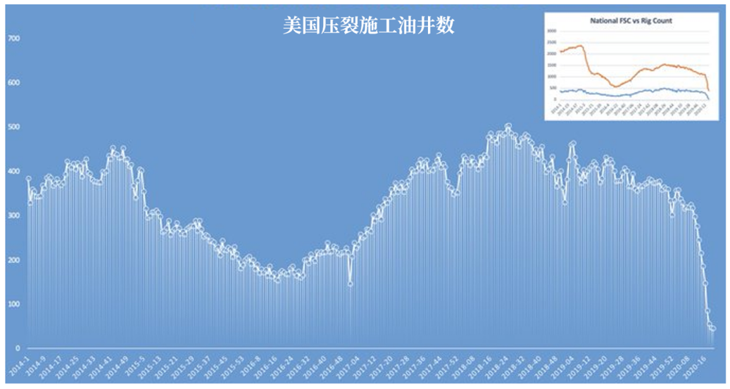 而今年3月开始的低油价,对美国页岩行业的整体发展来说,则是雪上加霜。现在,页岩油井在加速关闭,压裂施工数出现断崖式下跌,美国页岩油产量目前已降至900万桶/日。