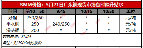 【SMM价格】5月21日广东铜现货市场各时段升贴水(第一时段)