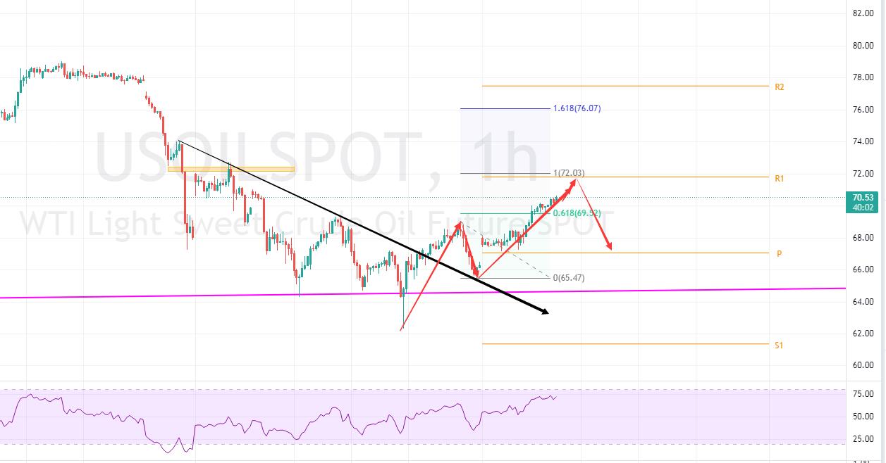 不过之前我也给大家提示过,油价在探底62之后短期将开启反弹,截止目前已经来到了70美元关口。可以说基本收复了上周的所有跌幅。