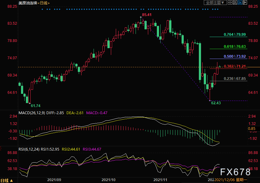 上方初步阻力关注50%回撤位73.92,进一步关注10月7日低位74.96以及61.8%回撤位76.63。