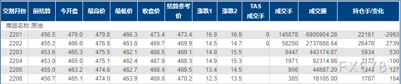 上海原油价格上涨3.70%,创逾一周新高,主力合约2201终盘收于473.4元/桶,涨16.9元/桶。