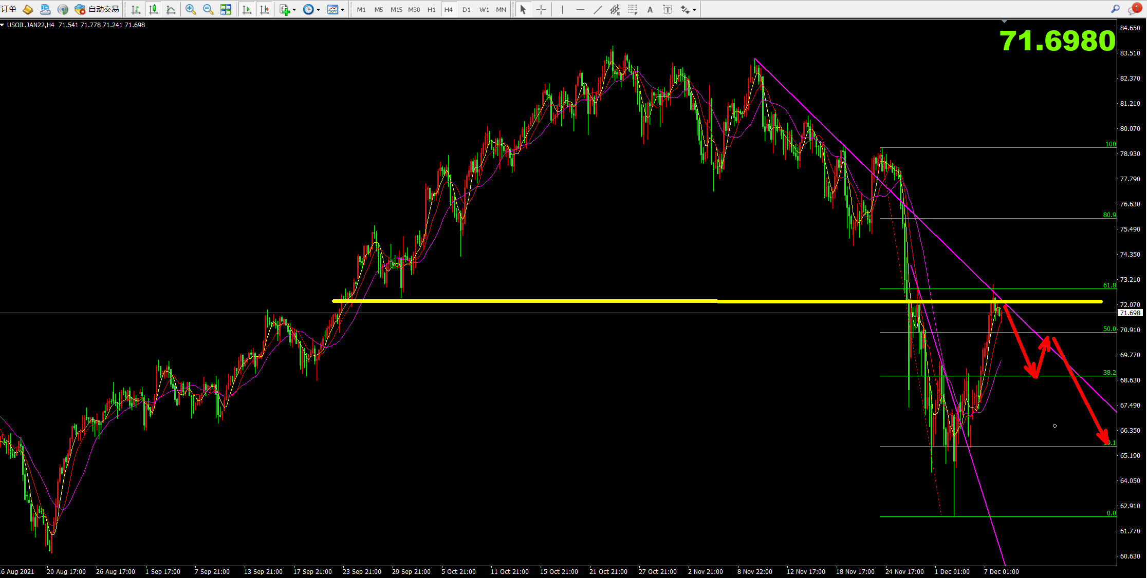 本周时间原油还是坚持看空做空思路对待,继续看油价回补下方缺口位置,然后等油价回测确认下方支撑有效后再布局趋势多
