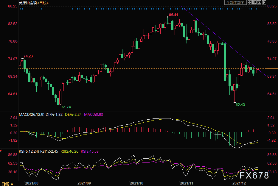 下方支撑关注200日均线70.44,进一步关注昨日低位69.39以及11月26日低位67.40。