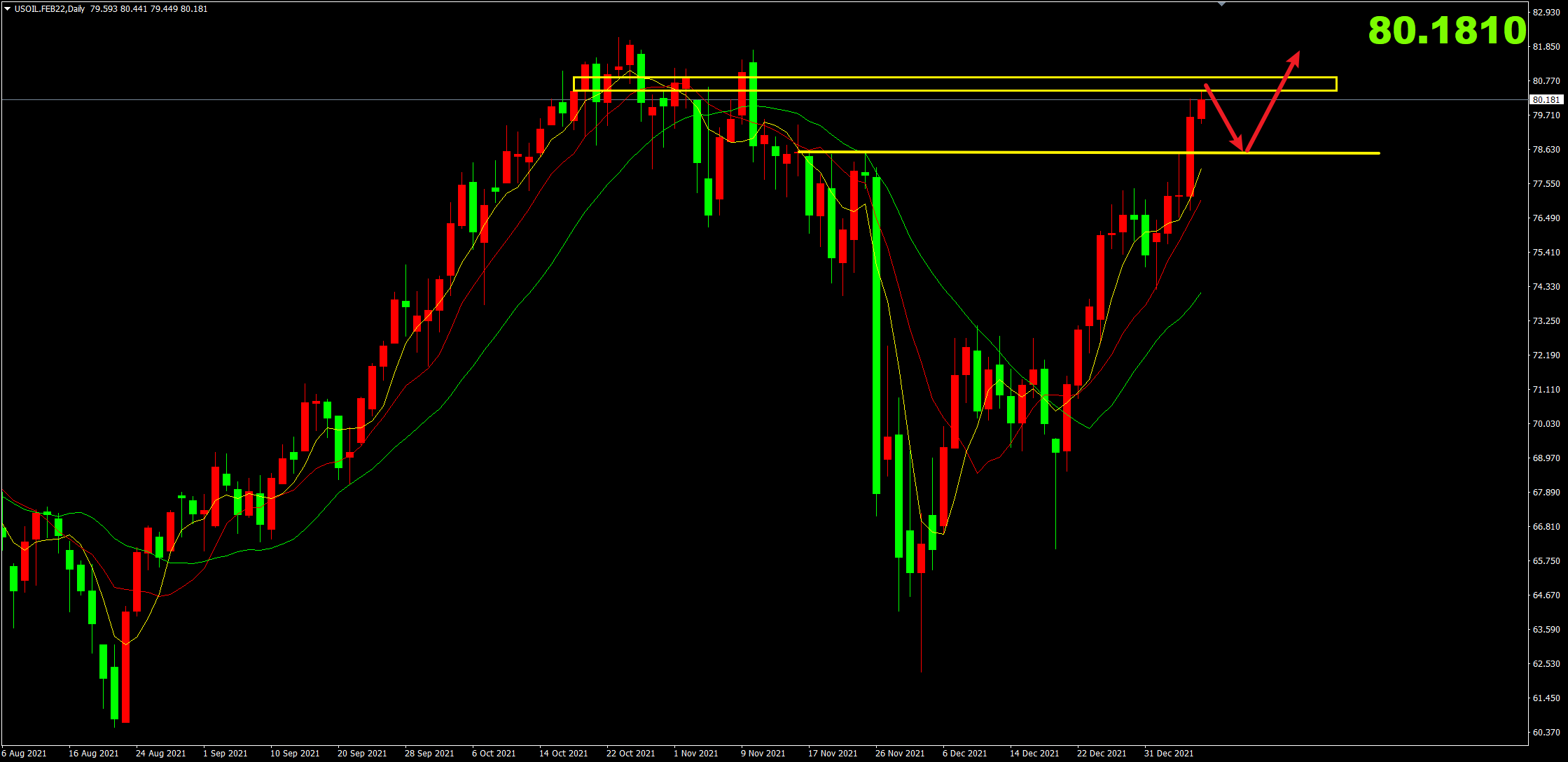 当前依托上方80.4-80.7阻力压制,看原油承压走回测,等下行修正后,我们再来接回多单!