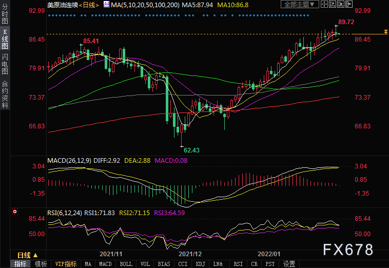 技术面来看油价仍然有进一步上涨的机会,但多日的高位震荡提醒投资者不能忽略回调的风险,一旦基本面紧张格局有所松动,回调将不可避免。