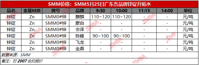 5月25日0#锌广东各品牌升贴水