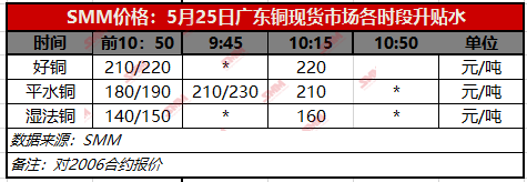 【SMM价格】5月25日广东铜现货市场各时段升贴水(第二时段)