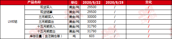 SMM网讯:2020年5月25日LME钴期货官方报价: