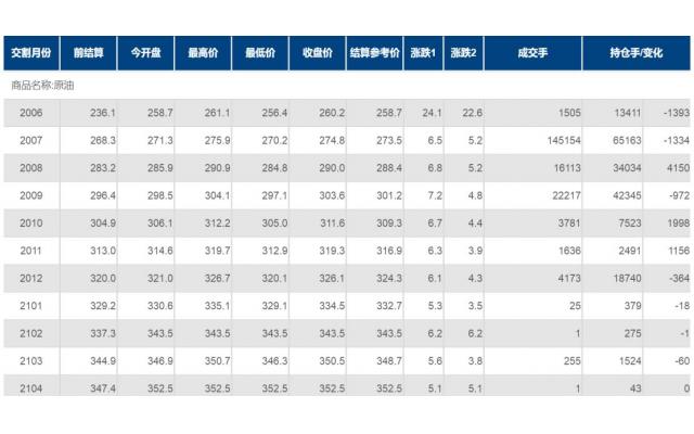 期货合约和成交情况一览
