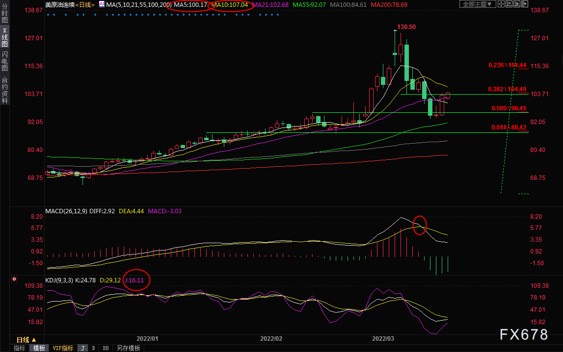 周五(3月18日)亚欧时段,美原油震荡上涨,目前交投于104.5美元/桶附近,俄乌和谈进展甚微,引发了对出台更严格制裁和石油供应长期中断的担忧;与伊朗的核谈判停滞不前,美股大涨,也给油价提供支撑,油价收复100关口后短线反弹信号有所增强,有望试探107-110区域阻力;不过,新冠疫情的恶化打压需求前景,市场情绪多变,还需要提防宽幅震荡的可能性。