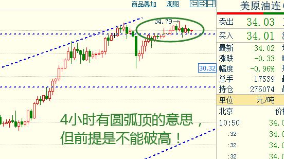说心里话,原油我们是看好调整一波的;但盘面总是给上涨信号;如果你看涨了,他就来个冲高回落!有朋友说,老杨你这几天对原油的看法起伏太大,今天看大涨,明天看大跌;不像之前,看涨就是一如既往,看跌也是果断坚决;主要是现在全球基本面没有明显的利多或者利空,所以造成了短线的漂浮不定!