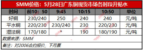 【SMM价格】5月28日广东铜现货市场各时段升贴水(第三时段)