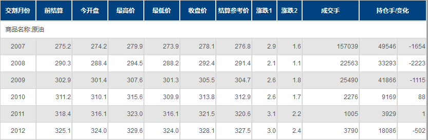 期货合约和成交情况一览
