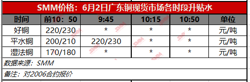 【SMM价格】6月2日广东铜现货市场各时段升贴水(第一时段)