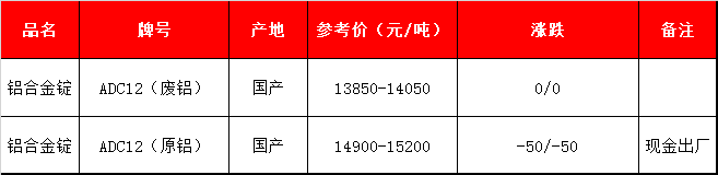 注:进口自提为宁波港ADC12现金自提价格